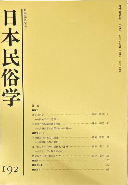 日本民俗学 第192号Bulletin of the Folklore Society of Japan NIHON-MINZOKUGAKU