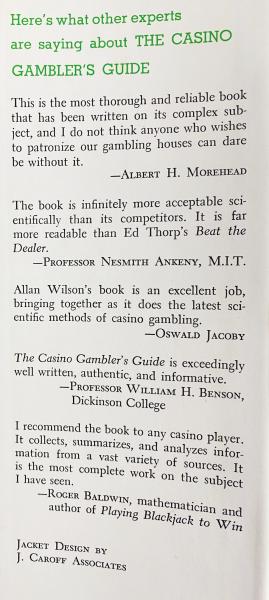 同時代のエドワード・O・ソープ(『Beat the Dealer』1962)の流れにも近く、