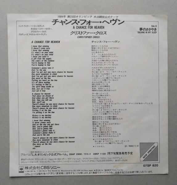 レコードEP 【美盤】 クリストファー・クロス チャンス・フォー・ヘヴン/夢のささやき