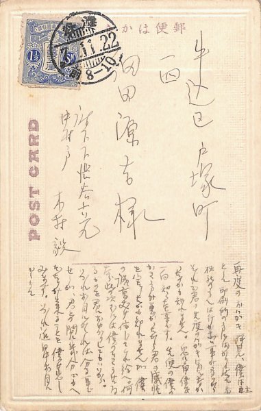 • 解説 細田源吉宛 ペン書 16行 大7・11・22(消印) 行き違いがあったか。文殊ホテル絵葉書。「先便の僕のかき方が悪かったから君の感情を害したかも知れませんが僕の誠意だけ信じてくれ給へ。何なら此の次ぎには僕のひきうけてゐるものを君におゆづりしてもいいから」。(発信地)府下下渋谷(受信地)牛込区戸塚町 #八木書店近代自筆物/3.葉書類 #八木古書2025年9月新蒐 code09873 ※自筆物につきましては、毎月25日前後に新蒐品を追加しております。PDF形式で御覧になりたい方は https://company.books-yagi.co.jp/archives/news/10928 を参照ください。94号目録(R7.1)以後の追加は「#八木古書2025」で検索できます。