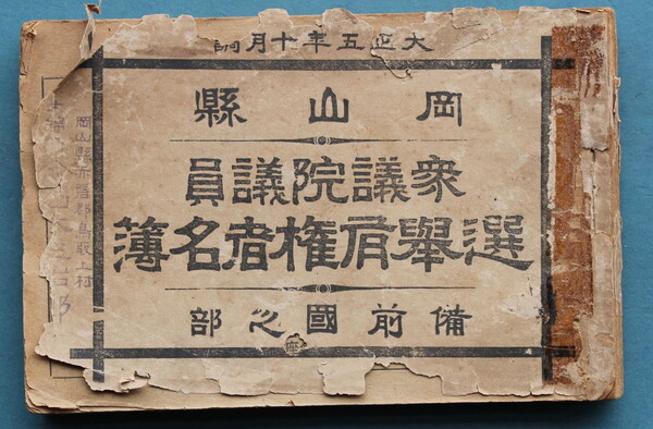 岡山県衆議院議員選挙有権者名簿備前国之部