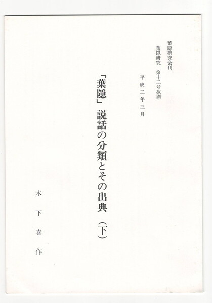 葉隠研究 第12号 抜刷「葉隠」説話の分類とその出典(下)