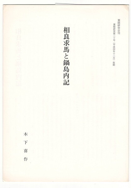 葉隠研究 第20号 抜刷 相良求馬と鍋島内記