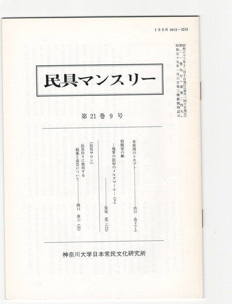 民具マンスリー 通巻249 21巻09号 若狭湾のトモブト