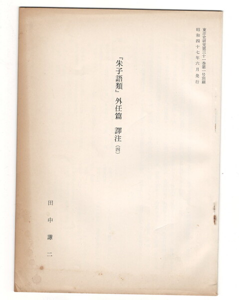 東洋史研究第31巻第1号抜刷 「朱子語類」 外任篇 訳注4