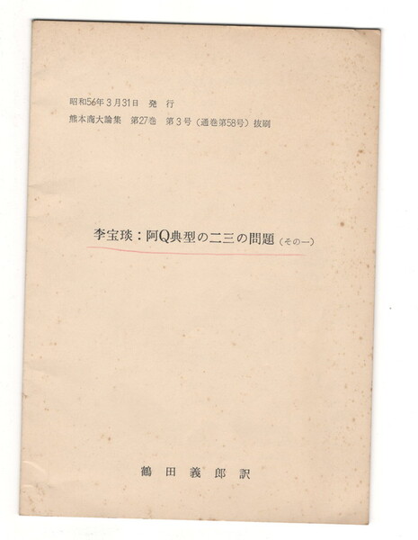 李宝● 阿Q典型の二三の問題 その1