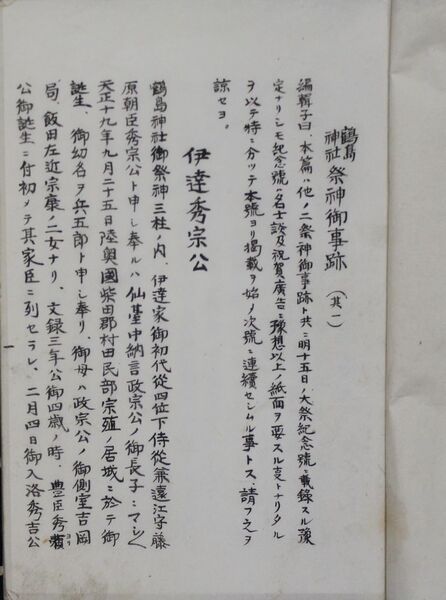 愛媛県宇和郡宇和島 鶴島神社祭神御事蹟