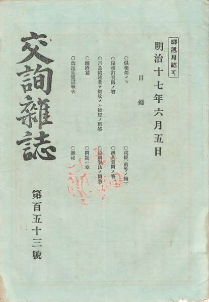 • 解説 ヤケ・シミ・折目 端虫損有 倶楽部ノ事・政経(前号ノ続)