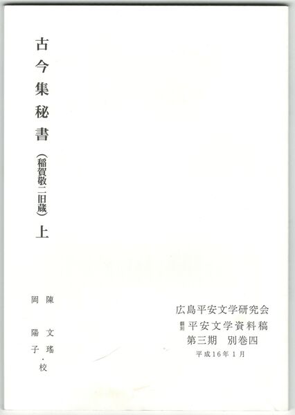 翻刻平安文学資料稿 第3期 別巻4巻 古今集秘書(稲賀敬二旧蔵) 上