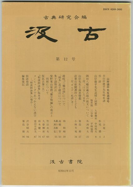 汲古 12号 山岸徳平先生追悼号