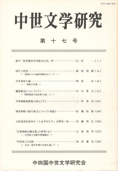 中世文学研究 17号