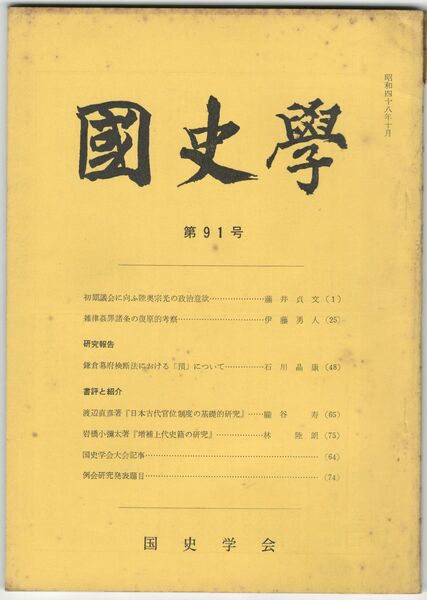 国史学 昭和48年10月 第91号