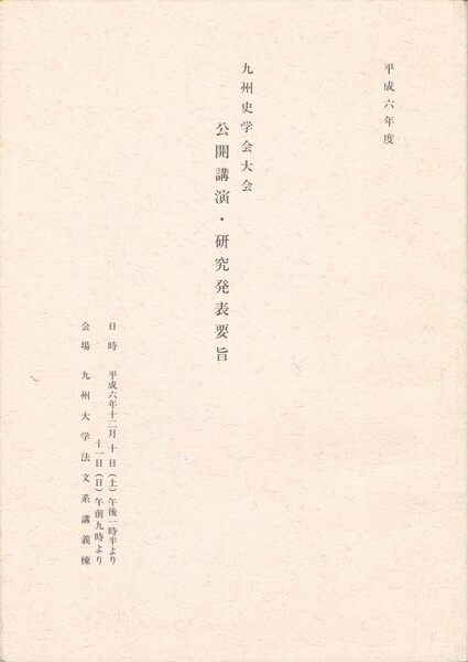 九州史学会大会公開講演・研究発表要旨 平成6年度
