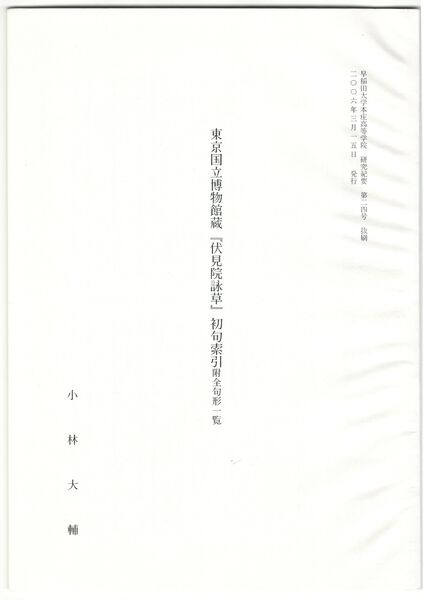東京国立博物館蔵『伏見院詠草』初句索引