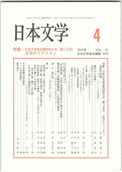 日本文学61巻 4号