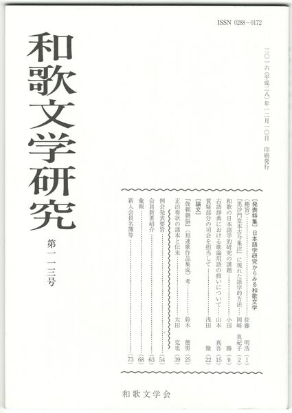 和歌文学研究113号 日本語学研究からみる和歌文学