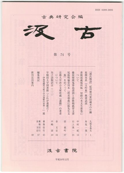 汲古 74号 『源氏物語』紀州徳川家旧蔵本の片鱗
