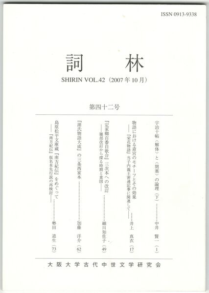 詞林 42号 宇治十帖<解体>と<閉塞>の論理 下