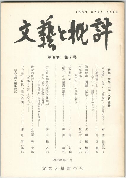 文芸と批評  6巻 7号 文学 1910年前後