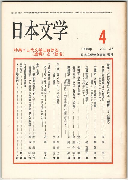 日本文学37巻04号 古代文学における<虚構>と<他者>