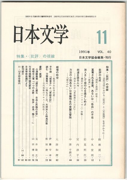 日本文学40巻11号 <批評>の視線
