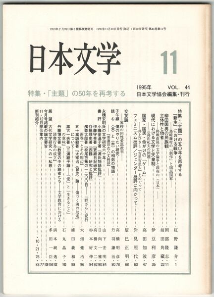 日本文学44巻11号 「主題」の50年を再考する