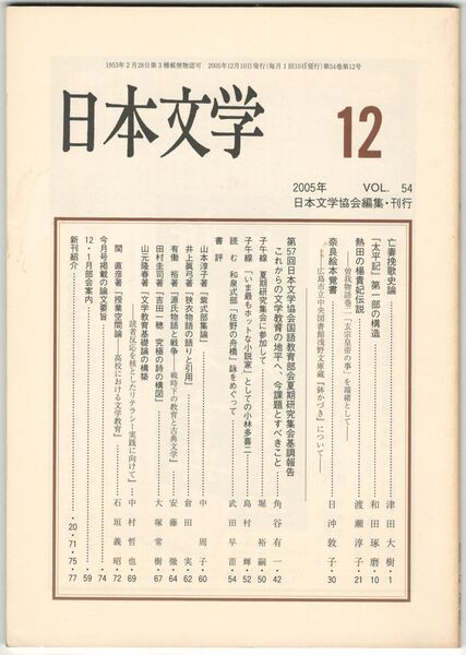 日本文学54巻12号 亡妻挽歌史論