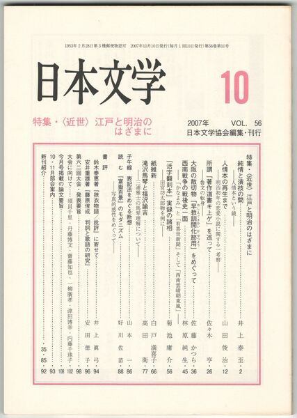 日本文学56巻10号 <近世>江戸と明治のはざまに
