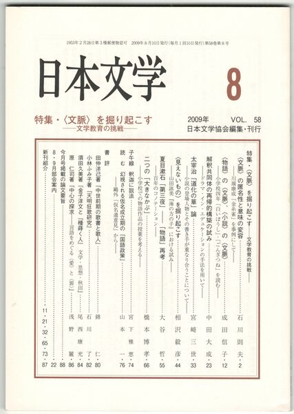 日本文学58巻08号 <文脈>を掘り起こす
