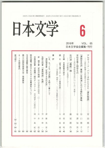 日本文学65巻06号 アルヴェード・バリーヌのとらえた『源氏物語』