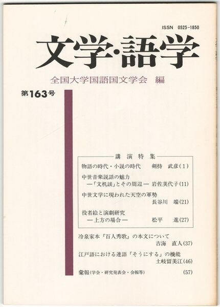 文学・語学163号 物語の時代・小説の時代