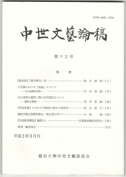 中世文芸論稿 13号
