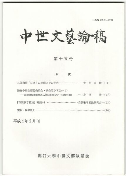 中世文芸論稿 15号