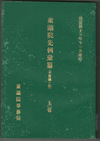衆議院先例彙纂 上・下 本会議ノ部・委員会ノ部