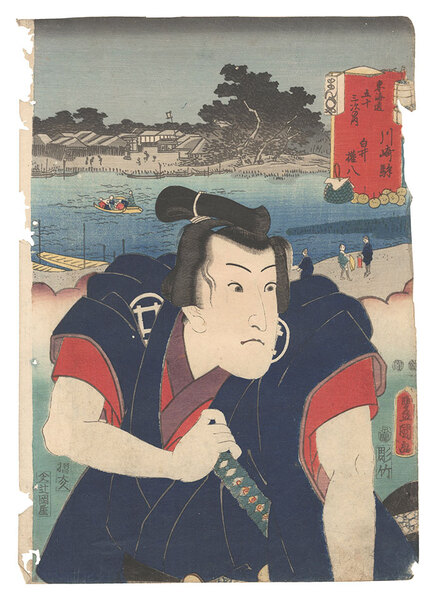 役者見立東海道五十三駅 川崎駅 白井権八 Actors for the Fifty-three Stations of the Tokaido Road / Kawasaki: Shirai Gonpachi