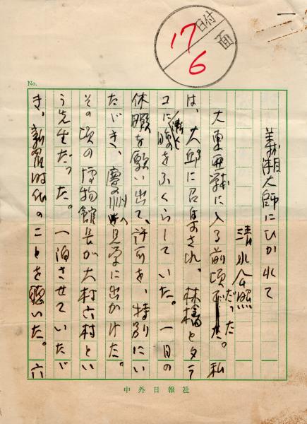• 解説 150字詰7枚完 中外日報社用箋使用