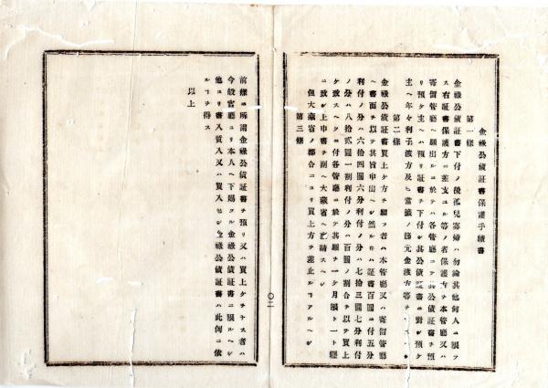 • 解説 N25101118○明治布告布達 ○金禄公債証書保護手続書制定 金禄公債証書の質入譲渡解禁に伴い大蔵省が生計困窮者の証書を買上た 内務大蔵両卿連名○明治11年 大蔵省布達 栃木県○和本古書古文書