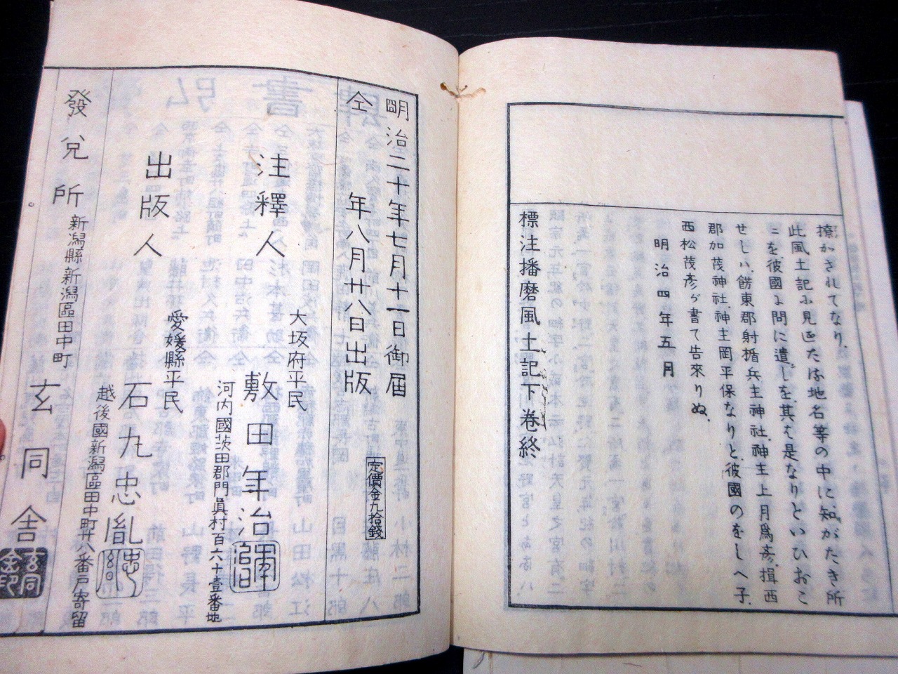 • 解説 和本明治20年(1887)国学「標注播磨風土記」上下2冊揃い/敷田年治/古書古文書/木版摺り/万葉仮名です。