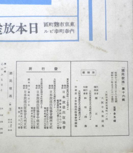 楽譜 国民歌謡 奥の細道/村の少女 第16集 昭和12年 日本放送協会 ラヂオテキスト b1