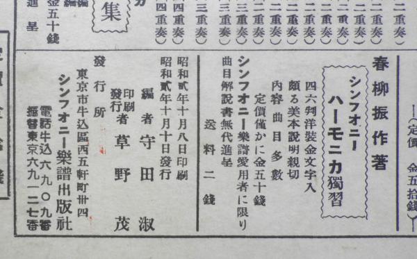 楽譜 磯節(二重奏) 昭和2年 シンフォニー楽譜出版社 a9