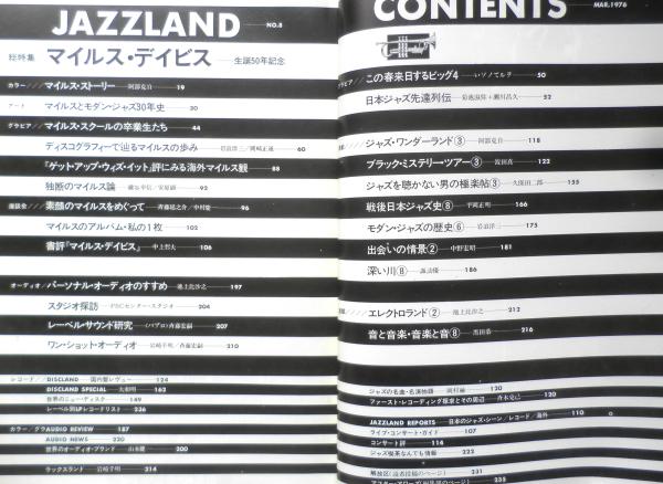 総特集/マイルス・デイビス・生誕50年記念 マイルス・ストーリー マイルスとモダン・ジャズ30年史 マイルス・スクールの卒業生たち ディスコグラフィーで辿るマイルスの歩み 「ゲット・アップ・ウィズ・イット」評にみる海外マイルス観 独断のマイルス論 素顔のマイルスをめぐって マイルスのアルバム・私の1枚 書評「マイルス・デイビス」 他