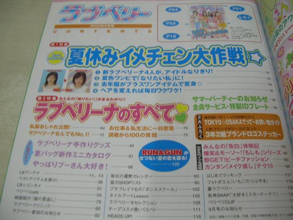 ラブベリー 2002年08月号 仲川美穂+倉田夏実+沢井美優+滝裕可里+河辺千恵子 表紙 冊子付:TOKYO☆OSAKAお買い物ガイド+3年2組ブランドロゴシール 松山愛里 渡辺美夢 芳賀優里亜 高橋知子