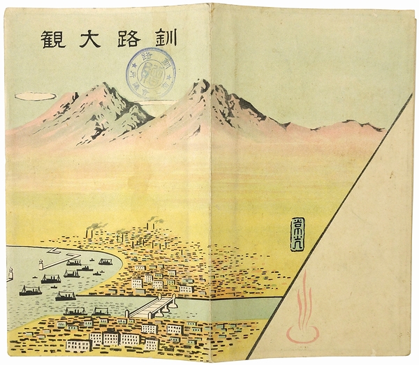 • 解説 (表)鳥瞰図「釧路大観図絵」、(裏)釧路大観、表紙の内側に釧路市街図あり。