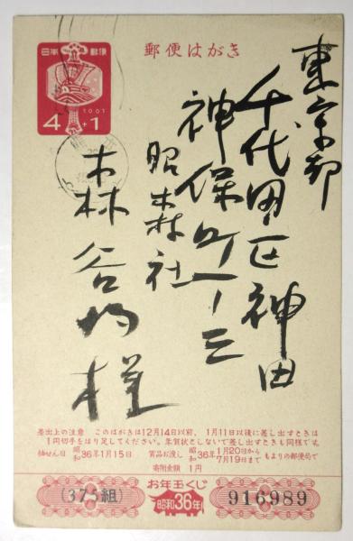 永松定 年賀葉書 森谷均宛