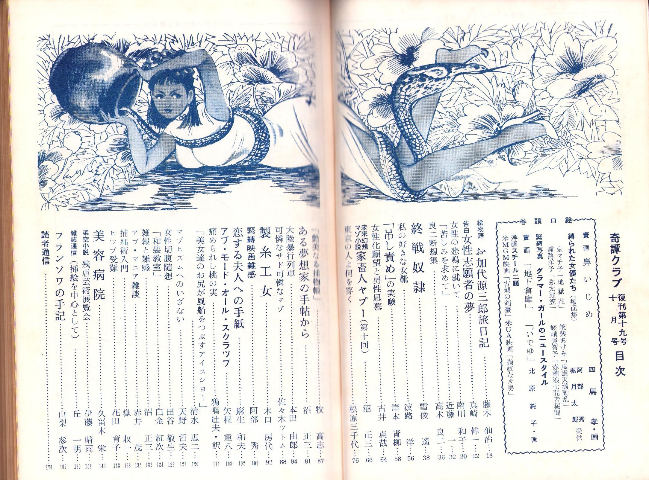 • 著者 〈画 四馬孝、北原純子〉〈木口房代「製糸工女」9頁〉〈伊藤晴雨「架空小説 残虐芸術展覧会」2.5頁〉〈藤木仙治・文画「絵物語 お加代源三郎旅日記」4頁〉、沼正三