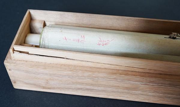 • 解説 桐箱に汚れ・一部割れ、本紙に小ジワ・微シミ、八双部に書入れが有ります。