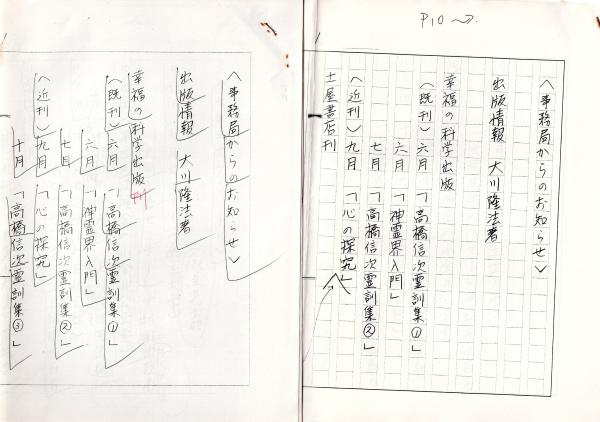 • 解説  今回出品している1980年代の幸福の科学初期資料群は、最初期の機関誌にて編集に携わっていた人物の旧蔵品である。