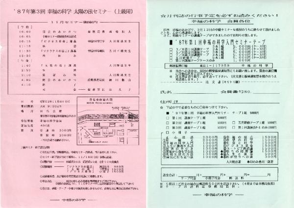 15) 幸福の科学初期資料(1980年代後半) 大川隆法?原稿コピー12枚/1987年のチラシ2点/事務局からのお知らせ他チラシ原稿/講演会の感想原稿ほか