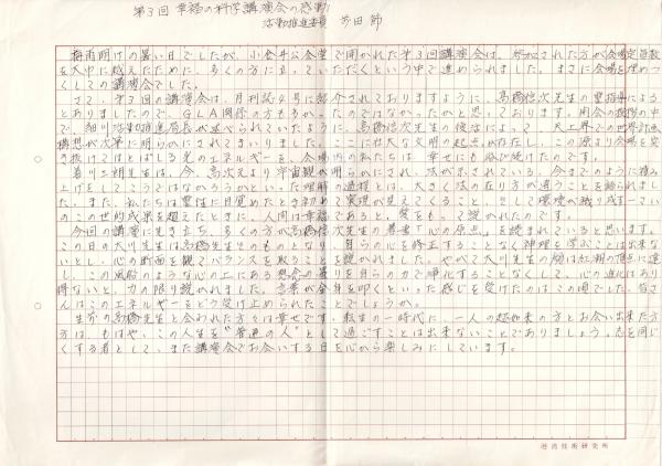 当品は1枚目欠だが大川隆法と思われる原稿コピー12枚、1987年の幸福の科学チラシ、事務局からのお知らせなどチラシ原稿、講演会の感想原稿など一括になります。