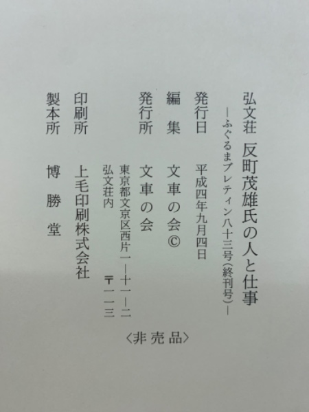 弘文荘反町茂雄氏の人と仕事 <ふぐるまブレティン 第83号(終刊号)>